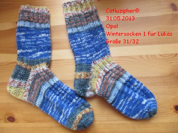 Dann habe ich das erste Paar für Lukas Wintersocken fertig: