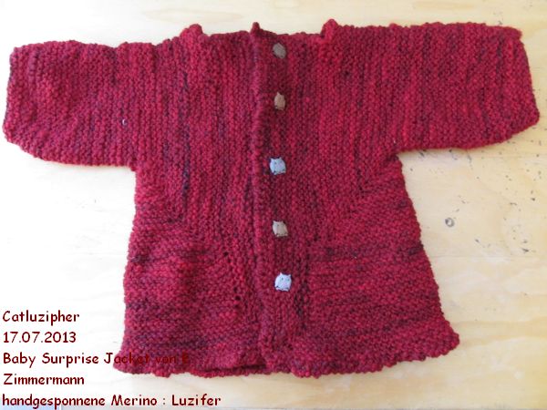 Aus der gleichen Wolle – dem Rest – entstand noch ein Baby Surprise Jacket – und damit ist die Wolle auch fast restlos verstrickt. Dabei war es spannend, wie groß die Jacke werden wird und ob sie Tim im Herbst eventuell noch passen wird – sie tut es 😀 – was mich sehr freut.