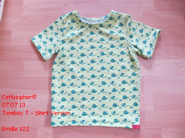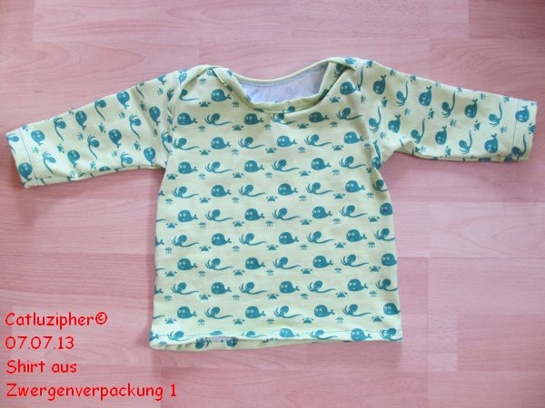 Dafür gab es auch noch ein Shirt für Tim – dieses Mal passt es auch mit dem Ausschnitt – nach dem Schnitt in der Zwergenverpackung 1