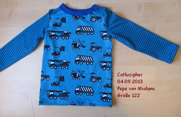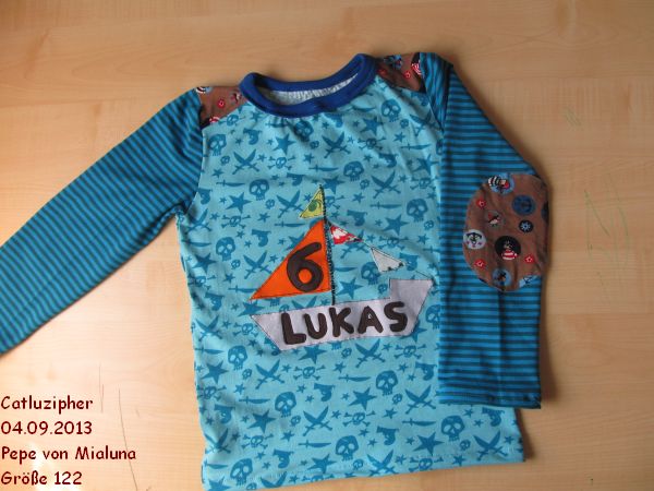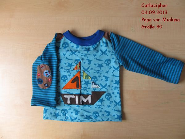 Auf für den Großen sind dann noch ein T – Shirt nach dem Tomboy – Schnitt und ein Shirt nach dem Pepeschnitt entstanden. Den Stoff hat er sich selbst ausgesucht, denn bei uns im nächsten Ort gibt es jetzt ein gescheites Stoffgeschäft… das ist soooooo schööööön.