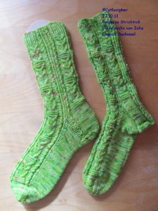 Sehr grün war diese Strickwoche und die grünen Socken sind nun auch fertig – bleibt noch der grüne Stachelbeerenpullover, an dem ich inzwischen an der Kapuze angelangt bin.