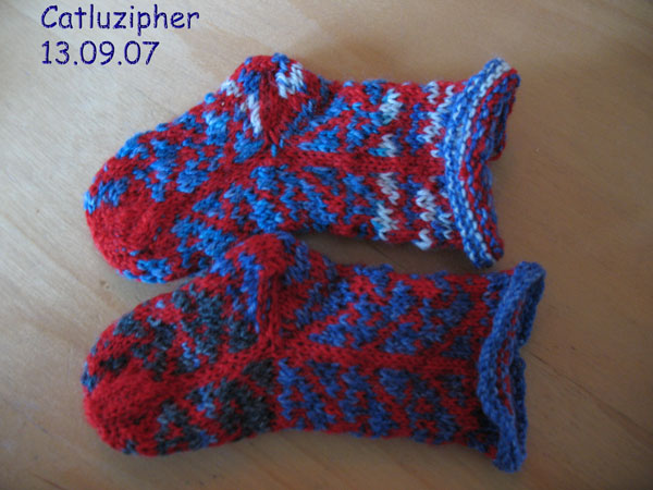 Irgendwie hatte ich mal wieder das Bedürfnis türkische Socken zu stricken und da gerade die Resteverwertungssocken fertig waren