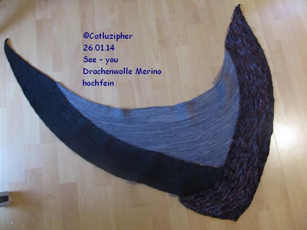 Letztes Jahr trug ich meinen See – You als wir meine Schwester besuchten. Das Tuch gefiel ihr sehr – nur dioe Farben waren so gar nichts für sie – sie mag es dezent grau, schwarz usw. Das sind nicht meine Farben und ich habe trotzdem Wolle dafür bestellt und mich dann im Dezember auch dran gemacht – Um das ganze Tuch etwas lebendiger und nicht so gradaus zu gestalten habe ich das Grau noch mit einem dezent farbigen Strang ergänzt – dem Hades aus dem