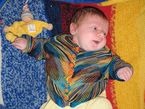 hat sich Corinna gewünscht und heute war Lukas mit der von ihr gestrickten Jacke unterwegs zum Metzger und zum Bäcker. Noch ist die Jacke ein bisschen reichlich, aber Lukas wird ja wahrscheinlich noch ein bisschen wachsen.