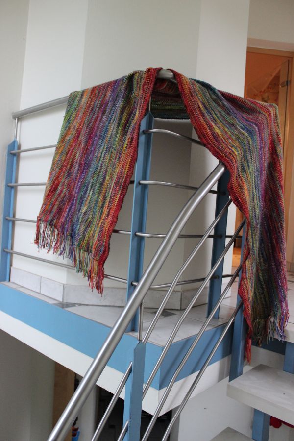 Dann habe ich mein Mini Mania Scarf fertig – angefangen habe ich vor ungefähr 2 Jahren mit dem Ziel mir einen schönen 20 cm hohen Schal zu stricken und konnte dann nicht mehr aufhören und Resten waren und sind da 😀