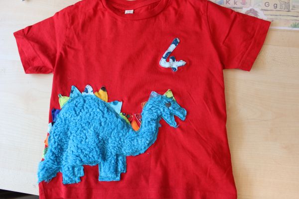 Das T – Shirt ist gekauft und dann mit der Drachenapplikation aufgepeppt und die Idee zu den Einladungen fand sich in den Untiefen des Internetts.