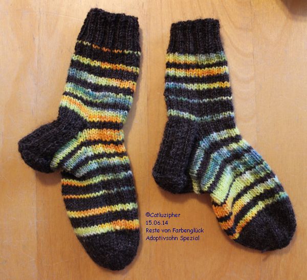 Aus dem Rest des Pullunders fürs Kamikazekind wurde auch noch ein Paar Socken für ihn, die ihm auch sehr gut gefallen.