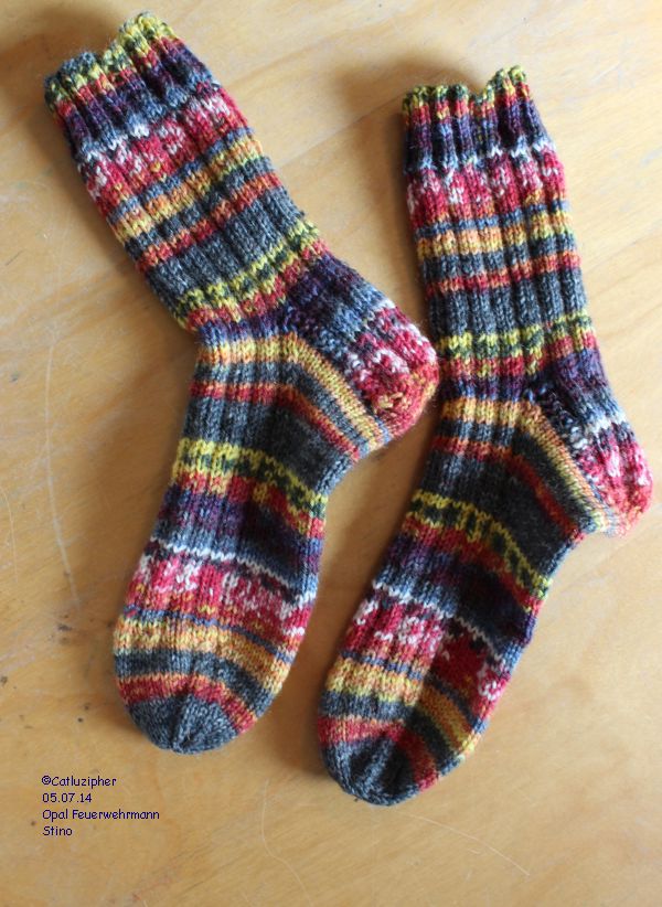 Dann habe ich letztes Jahr von einer lieben Freundin einen Opalknäuel zum Gebutstag bekommen, das meine Jungs sofort adoptierten. Zwei Paar socken mit dem Namen Feuerwehrmann sind daraus entstanden.