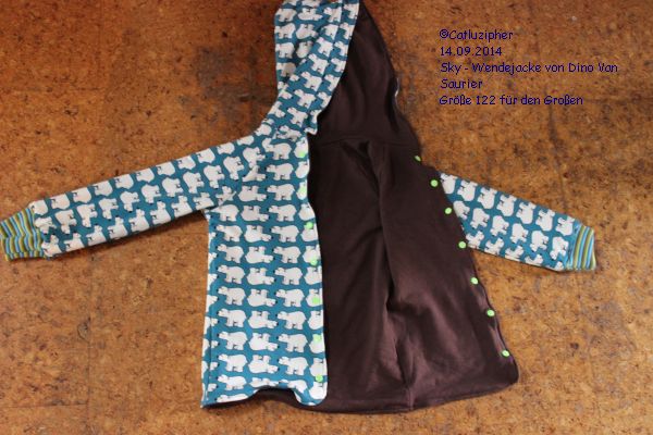 Für den Großen habe ich einen tollen Swetstoff mit Eisbären gefunden. Dieser ist mit braunem Sommersweat gefüttert.