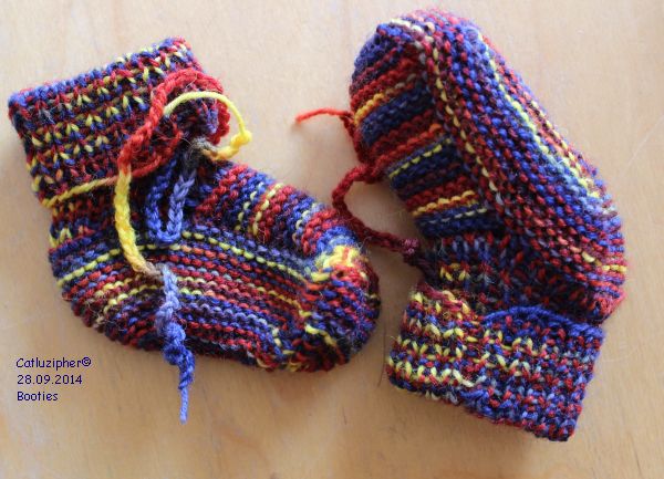 Und schon wieder eine Woche rum – ich habe auch wieder was fertig 🙂 – zwei Paar Booties und ein Endlossockenpaar oder der Sockenclub des Monats September.