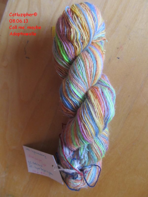 Zuerst das Buch aus einem handgesponnenen Spingle aus dem letzten Jahr. So sah die Wolle mal aus und so der Kammzug.