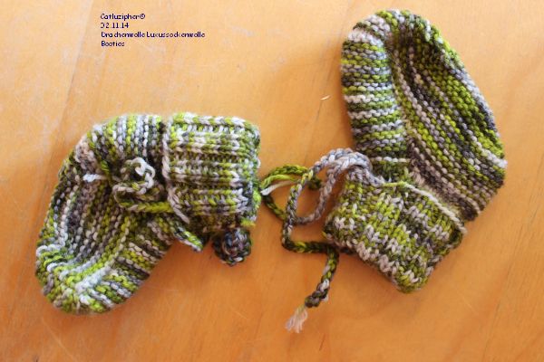 Dann ein Paar Booties aus dem Rest der Pulliwolle vom Pullover des Großen