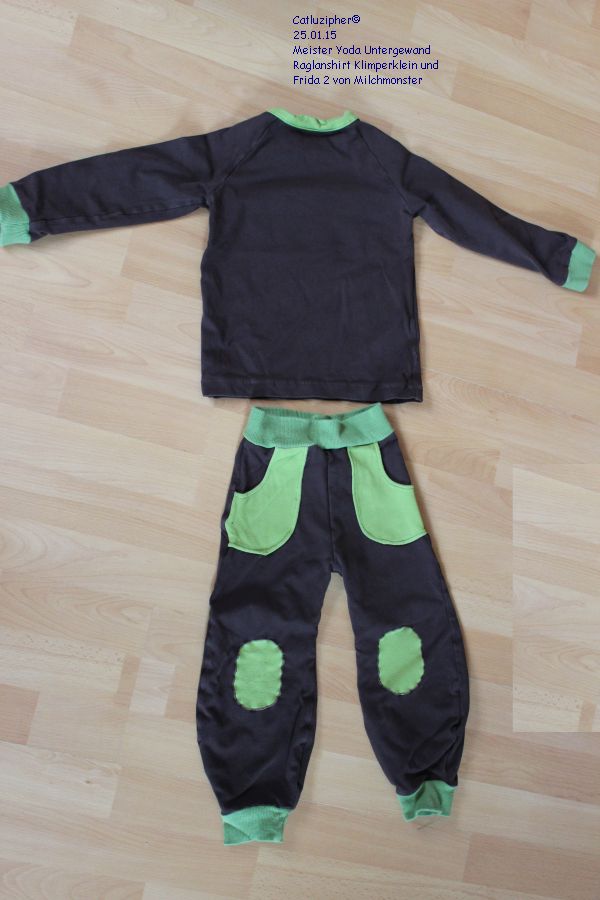 Mit denm Nähen der Faschingskostüme bin ich nun auch fertig. Für den Räuber gibt es ein Zwergenkostüm von Burda – ( Seine Reaktion: Iss mag niss Werghose, Iss mag niss Werg – Mütsse – iss mag niss Werg, Räuber iss bin. ) und für das Kamikazekind noch eine Hose und einen Pulli in braun zum Unterziehen für sein Yodakostüm.