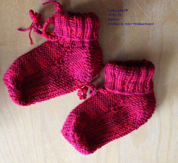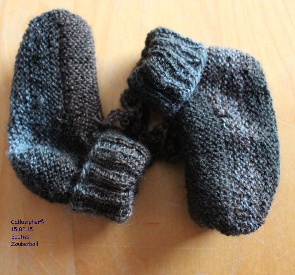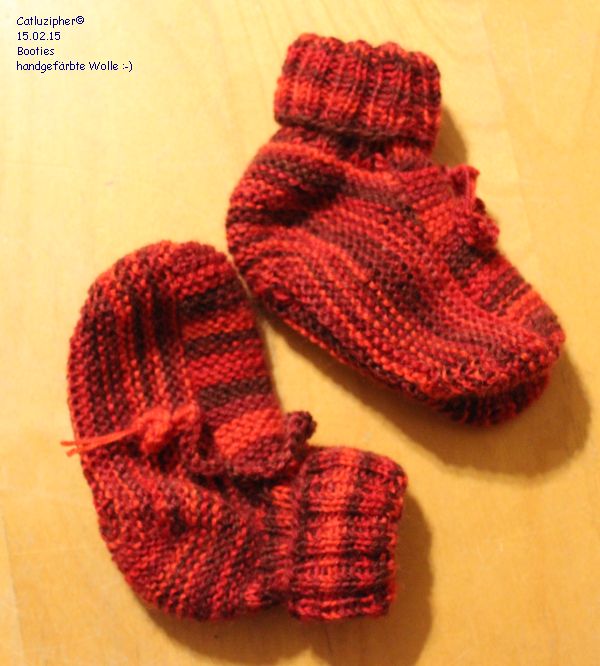 Vor den Ferien habe ich noch mal mein Sockenkörble geleert. Für eine kleine Dame mit großen Füßen habe och 4 Paar Booties gestrickt.