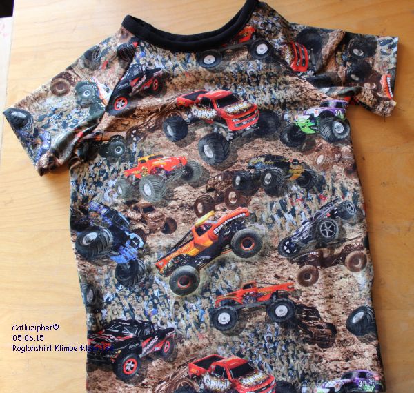 Es sind ferien und in den Ferien wird auch genäht – und zwar waren es dieses mal Altlasten – Stoffe, die sich die jungs oder ich ausgesucht haben und die zum Teil schon ein Jahr auf Verarbeitung warten. Die Schnitte stammten von Klimperklein – Raglanshirt und Sommerhose und Milchmonster: Frida