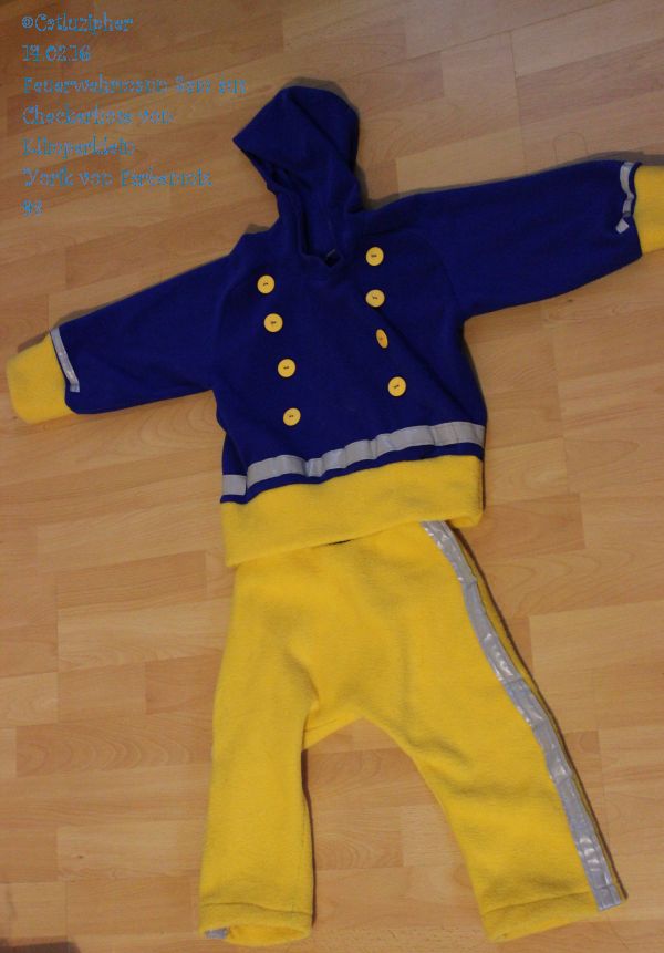 Für Fasching entstanden ein Feuerwehrmann Sam und ein Ninjakostüm für die beiden Kleinen. Beides ist aus Fleece gearbeitet. Die Schnittmuster sind die Checkerhose von Klimperklein und Yorik von Farbenmix