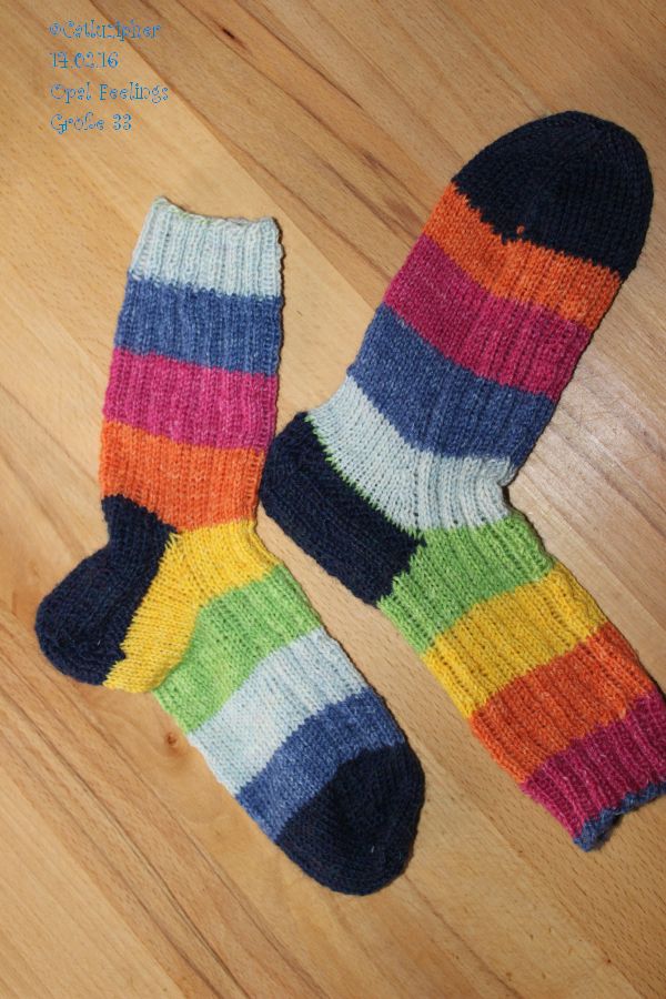 Auch Socken entstanden so einige, so zum Beispiel ein Paar regenbogenbunte für eine Freundin des Großen, die Geburtstag feierte.