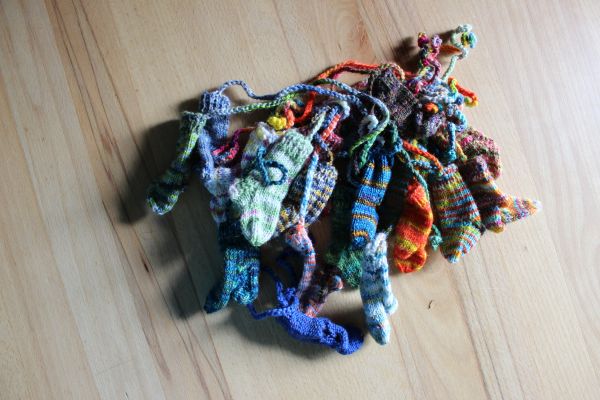 Dieses Paar entstand aus rumfliegenden Resten und gehört ebenso zum Buch Knitting on the Road.