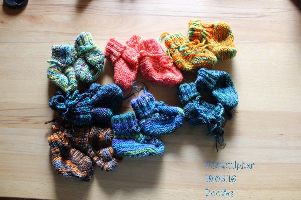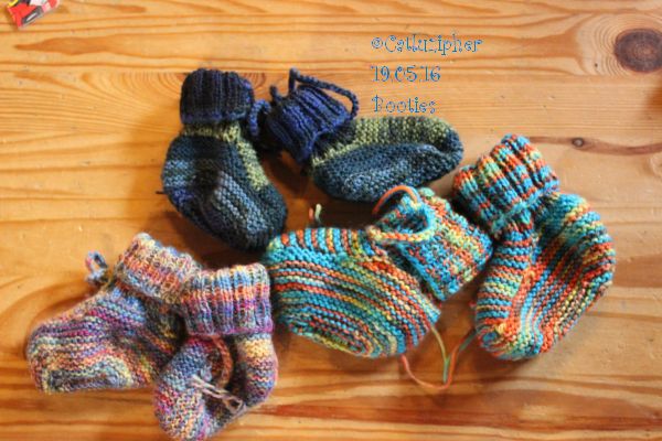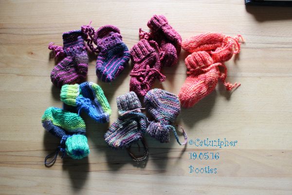 Wie immer entstanden nach meiner Anleitung eine ganze Menge Booties, die nach wie vor an das Krankenhaus gehen, in dem meine Jungs geboren wurden. Dort werden sie an die Eltern der Neugeborenen verschenkt.