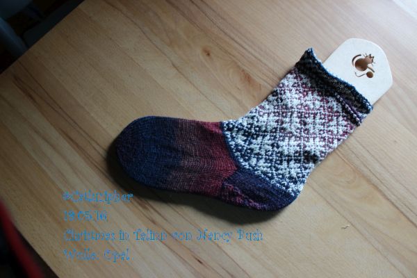 Eine Geschenksocken entstand auch nahc dem Buch Knitting ohn the Road. Da sie nicht tragbar ist, entstand auch nur eine.