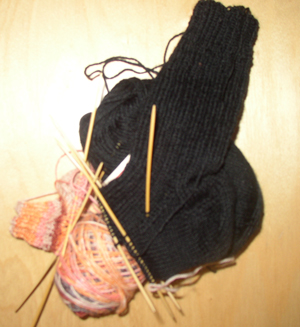 Dann die aktuellen Socken – einmal für meine Schwiegermutter in schwarz und einmal für die Sockenleine.