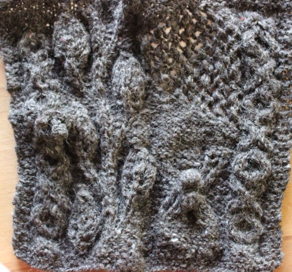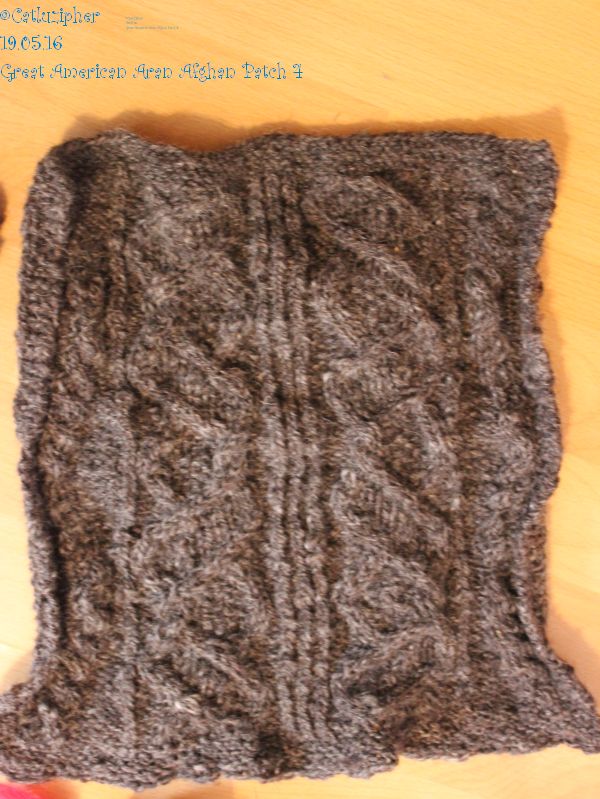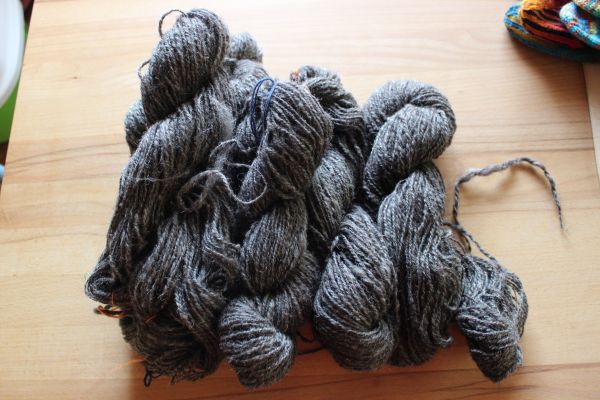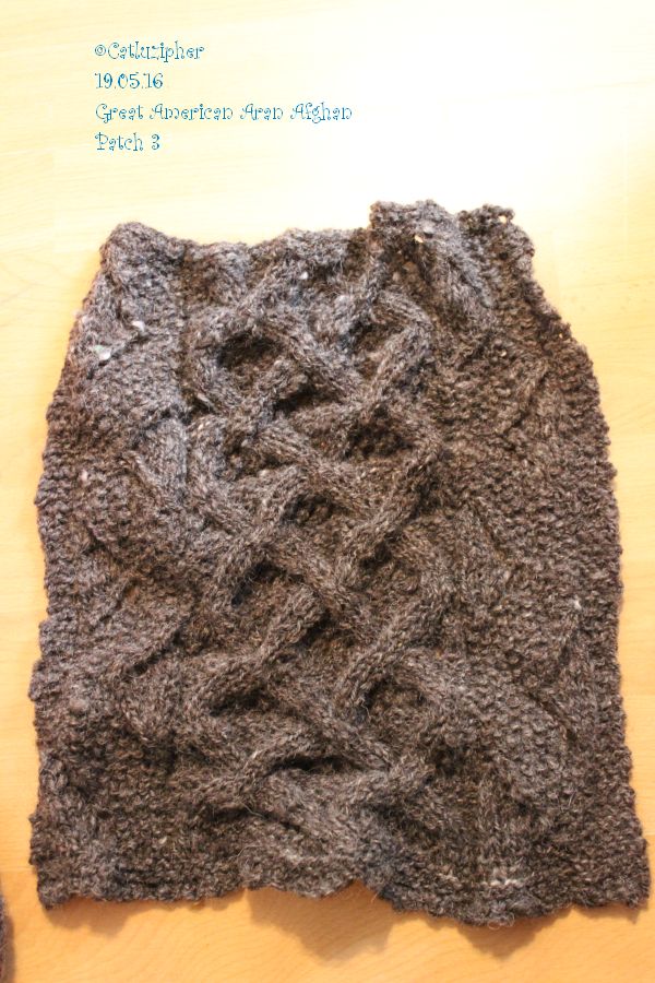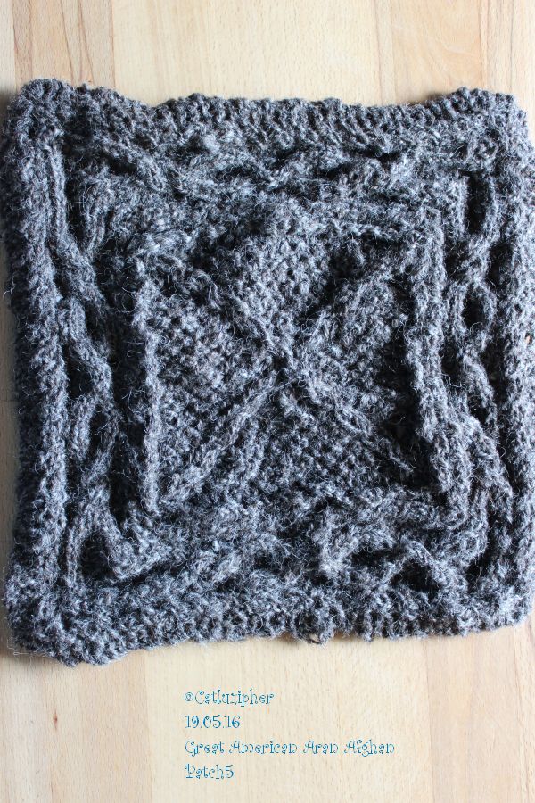Im Januar habe ich auch angefangen, mich einem lange gehegten Deckentraumprojekt zu widmen. Letztes Jahr kaufte ich mir auf dem Backnanger Wollefest eine ganze Menge alpines Steinschaf und begann zu spinnen. Dieses Jahr im Januar habe ich die Strickarbeit begonnen und im Moment mache ich einen Patch im Monat. 5 Stück sind es nun schon. Ich stricke die Patche so, wie sie im Buch erscheinen, damit ich eine gute Durchmischung von Mag ich und mag ich nicht so habe.
