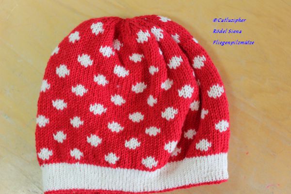 Vor 5 Jahren strickte ich für den Räuber eine Fliegenpilzmütze. Nun gibt es auch Erwachsene, die sich für das Punktemuster begeistern und so strickte ich für eine tolle Mitstrickerin eine Erwachsenenversion davon.