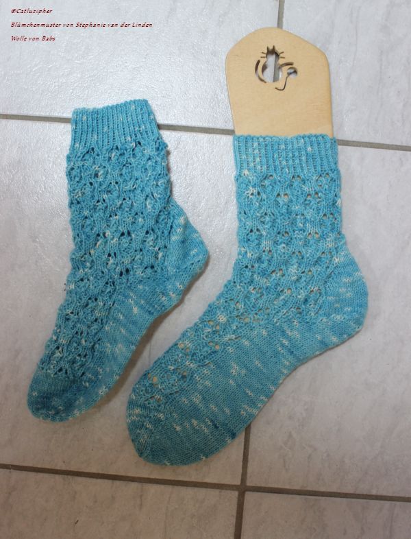 Auch fertig ist wieder einmal ein Bettsockenpaar, das meist aus dem Buch Socken rund ums Jahr stammt.