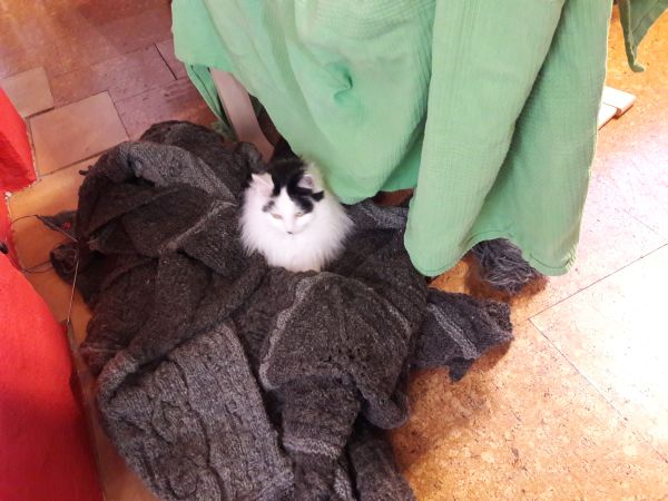 Die Bordürenstrickerei zieht sich auch wie Gummi und ist wenig unterhaltsam. Zumindest Mim liebt diese Decke schon sehr.
