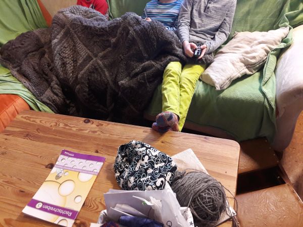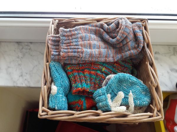 Da meine Socken im Moment eher nicht so ichstrickdassonebenbeifähig habe ich ein Paar Stinos zum Mitnehmen angeschlagen für die Veranstaltungen, bei denen ich geistig anwesend sein muss und zuhören sollte. Auch die werden immer mal wieder fertig. Die Wolle für dieses Paar ist ein Strang von Farbenglück, den ich von Wapiti geschenkt bekam.