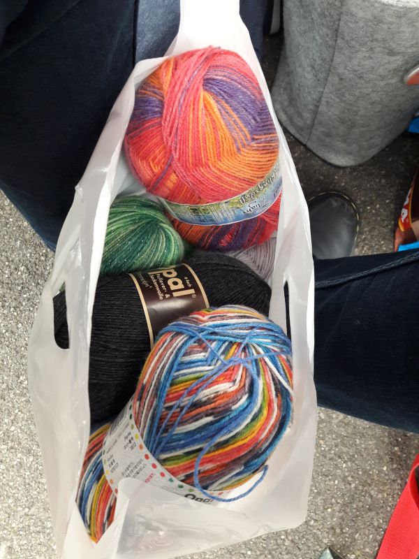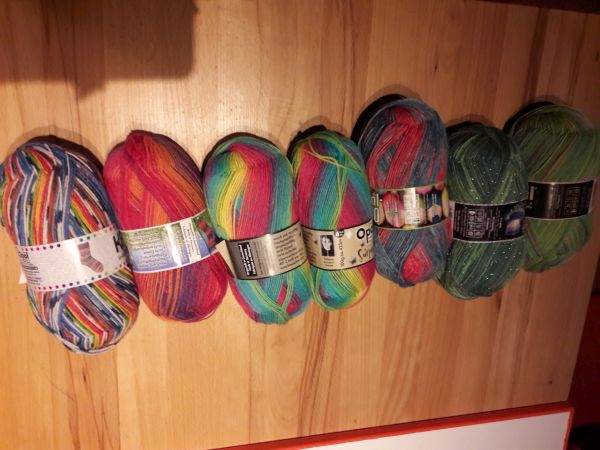 Dort gab es auch einen Sockenwettstricken und hier ist mein Anteil am Wollpaket:-)