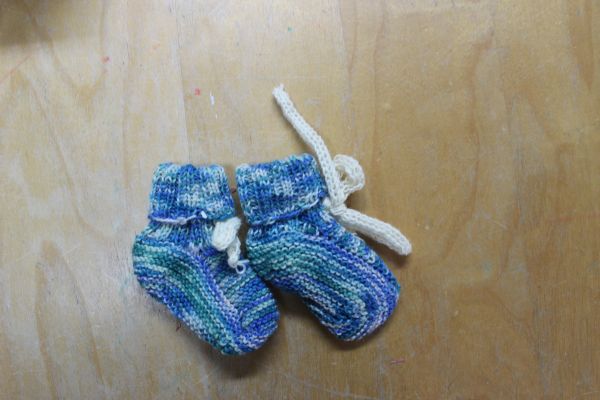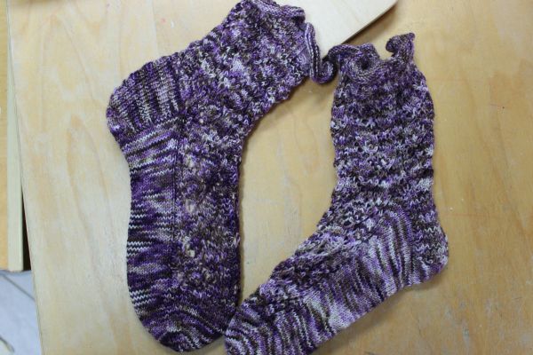 Weiterhin habe ich ein Paar Bettsocken – also Socken, die ich nunr im Bett stricke, fertig geworden.