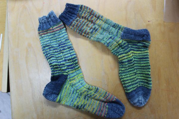 Da der Große ja beständig wächst und seine Füße das auch tun, stricke ich übers Jahr immer mal wieder Socken für ihn. Dieses Mal fanden sich 3 Reste von Opal zu einem Restesockenpaar zusammen.