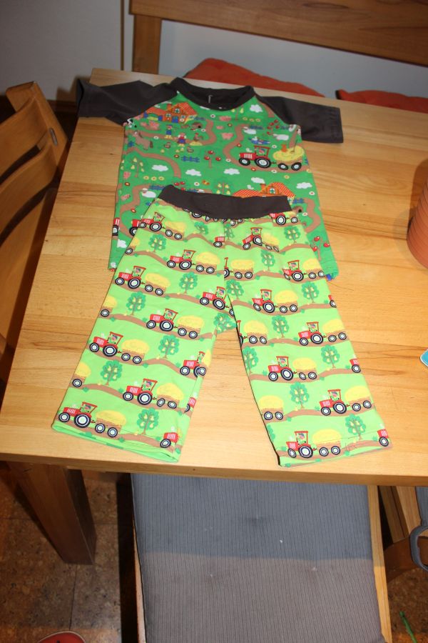 Genäht habe ich auch ein bisschen. Für den Räuber entstand ein Schlafanzug aus der Sommerhose von Klimperklein und dem Jonte von Lolletroll.