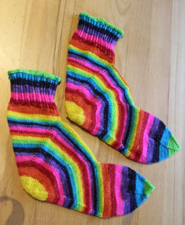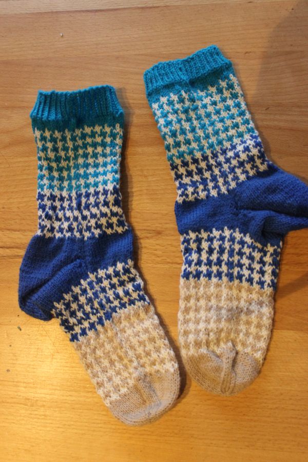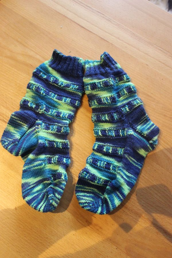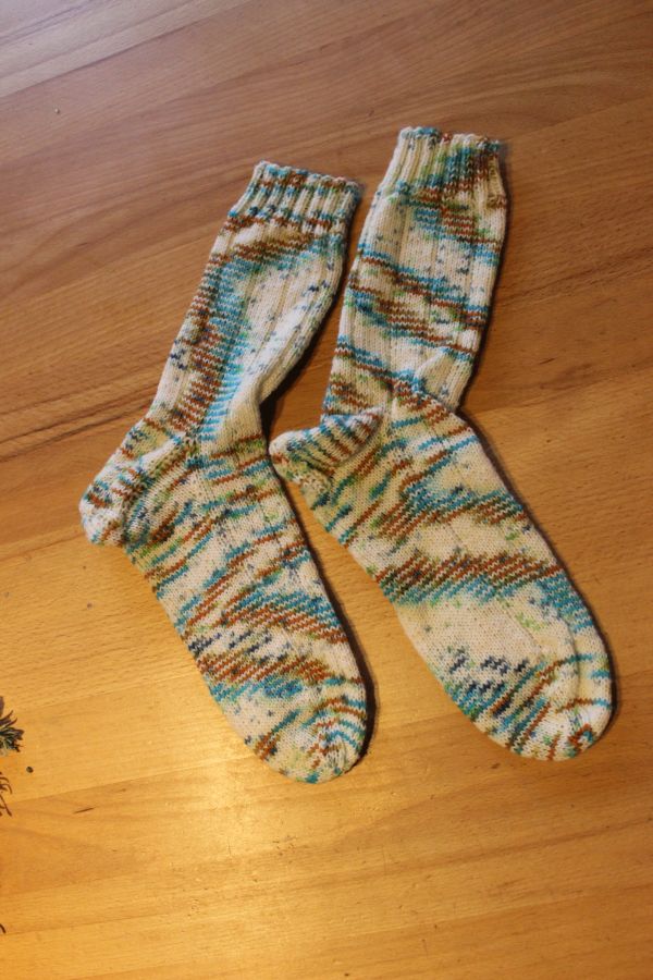 Vor einigen Jahren kaufte ich auf den´m Treffen in Nordenham einen total schönen Strang Sockenwolle – und wusste auch gleich, dass es Waterkantsocken werden sollen. Nun – dieses Jahr war es soweit. Da sind sie. Den Namen der Wolle weiß ich leider nicht mehr, die Banderole ist verschollen.