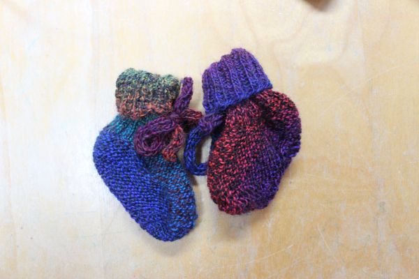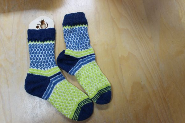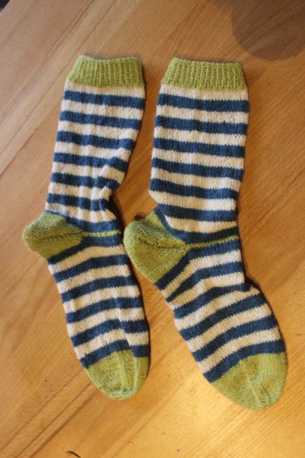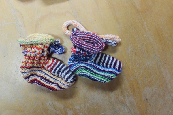 Aus diversern Wolllieferungen fanden alle 3 Söhne je eine Lieblingswolle und daraus strickte ich ihnen Socken und aus den Resten ein Paar für mich.