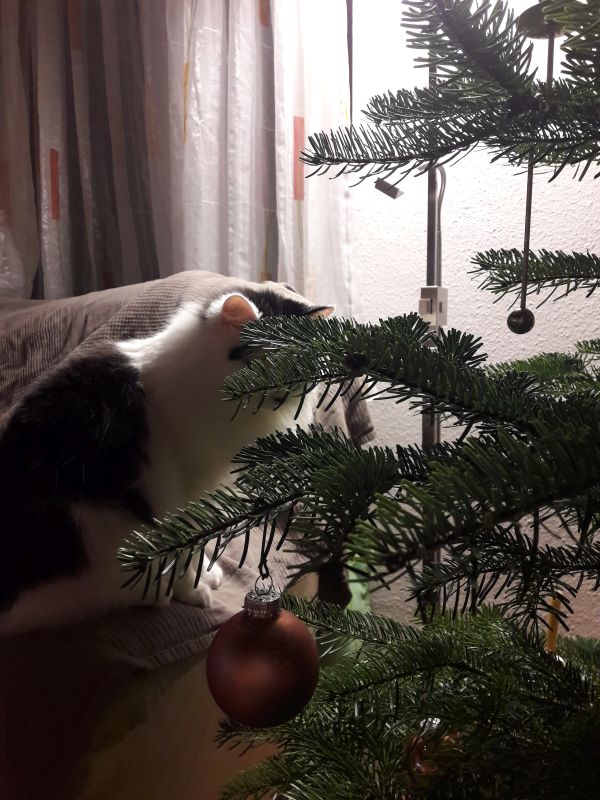 Wir feierten ein schönes WEihnachtsfest – was recht unschön mit Magendarm – bei einem der Jungs am Morgen begann. Die Katze liebte den Weihnachtsbaum – und niemals käme ihr in den Sinn mit den Kugel zu spielen.