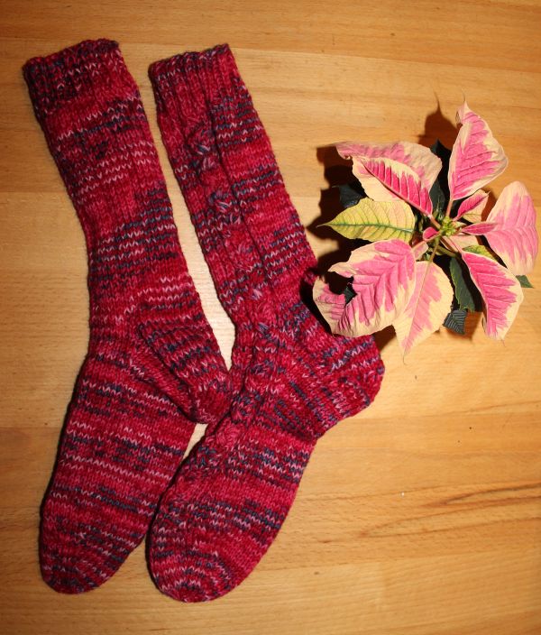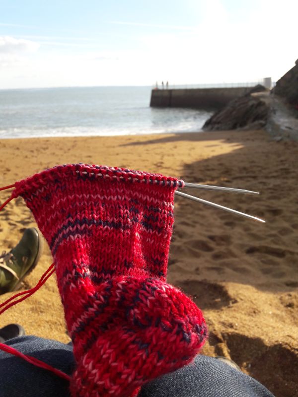 Seit einigen Jahren findet immer zum Nikolaustag ein dicke Socken Wichteln statt. Ich durfte Bianca bestricken und strickte ihr aus zwei schönen Drachenwollen ein Paar dicke Zopfsocken auf meiner Tour durch die Bretagne. So das eine oder andere Sandkorn von Saint Nazaire findet sich bestimmt darin, denn dort saß ich Anfang November strickend in der Sonne.