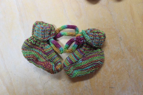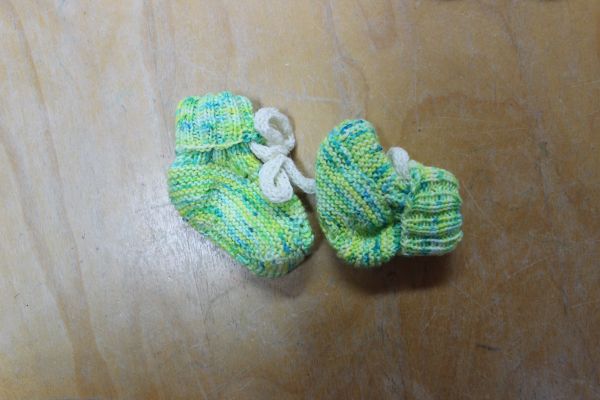 Einige wenige Booties habe ich in dieser Zeit auch noch gestrickt – im Moment pausiert die Produktion aber, da ich an einem Geschenk arbeite und eine Decke fertigstellen musste, die ich für einen Herzensmenschen aus vielen Patchen zusammenfügte.