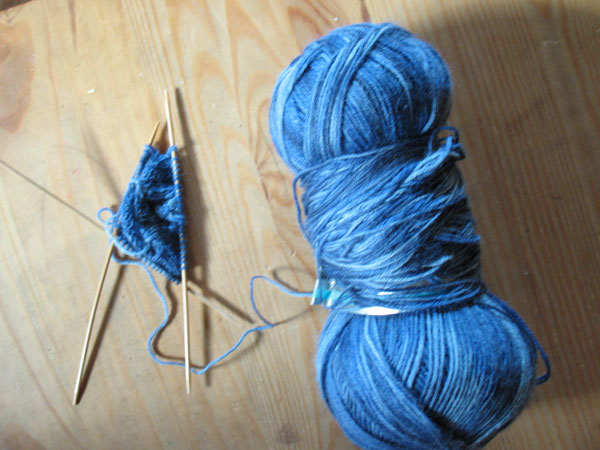 Eigentlich – ganz eigentlich habe ich dieses Mal nicht teilgenommen, schließlich sollte Lukas in der Anfertigungszeit zur Welt kommen und ich wusste ja noch nicht, wie ich mit dieser für mich total neuen Situation zurecht komme. Außerdem fiel auch noch unser Umzug in diesen Zeitraum. Also war ich auch total unvorbereitet als Claudia als Überraschung zum Treffen von Wapiti kam. Schon darüber habe ich mich riesig gefreut und dann gab sie mir ein kleines Päckchen – meinen Sockbagswap……mmmh, da hatte ich ja aus oben genannten Gründen nicht teilgenommen. Umso mehr freut mich diese gelungene Überraschung und die Socken sind auch schon auf den Nadeln *strahl*, denn zufälligerweise wurde gestern ein Sockenpaar kampfstrickenderweise beendet.