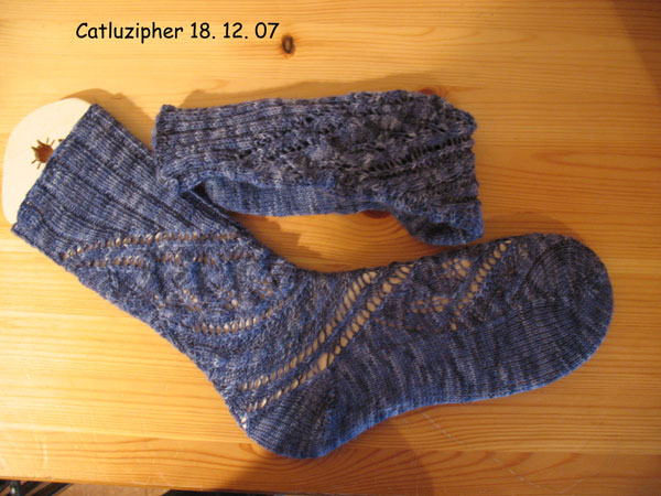 hieß das Sockenmuster, das Claudia mir mit meiner Sock – Bag überbrachte. Nun, das Muster war eine Herausforderung und einen Fehler habe ich auch eingebaut. Trotzdem werde ich die Socke wegen der einen falschen Verzopfung nicht ribbeln. Spaß hat das Stricken gemacht und die Socken sehen am Fuß einfach gut aus.Vielen Dank Claudia für die vielen kurzweiligen Strickstunden