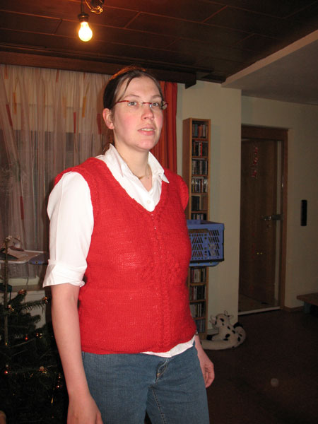 Nun ist es uns gelungen, ein Bild mit Inhalt zu machen, das für mich akzeptabel war und nicht nur vom Gatten gewählte Ausschnitte des Strickwerkes zeigt.