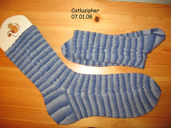Und das sind nun die aktuellen Socken – wieder für den Schwiegervater meiner Schwiegermutter. Diese Wolle hat entschieden mehr Spaß beim Verstricken gemacht als die Vorgängerwolle: