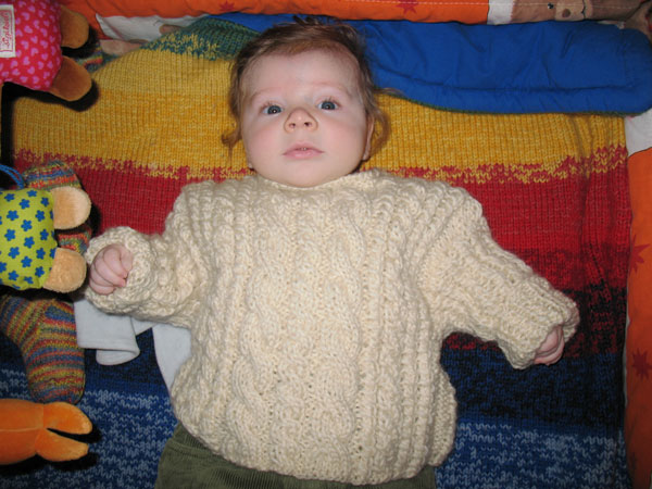 und zwar mit dem Pulli den Lukas von Turtleneck bekommen hat. Und er passt ihm jetzt fast, so dass er ihn heute zum Ausflug zu meiner Schwiegermutter tragen durfte. Nicht dass unser Sohn so schnell da wieder raus wächst. Der Pulli ist nämlich richtig, richtig schön. Vielen Dank :-))