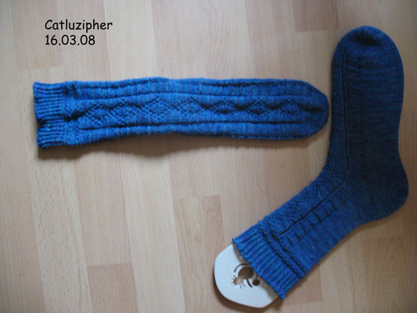 Endlich sind sie fertig. Diese Socken haben für meine Verhältnisse echt lange gedauert, aber es lag nicht am Muster, das war simpel und auch nicht an der Wolle, die ließ sich nämlich wunderbar verstricken und auch nicht an der Größe – so riesig sindmeine Füße nicht sondern schlicht und einfach daran, dass ich wenig Zeit zum Stricken hatte und das Jäckle unpedinkt fertig werden wollte.