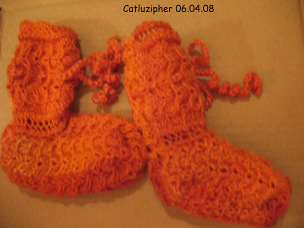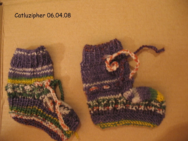 habe ich gestrickt, wobei sich das eine über eine Woche hinzog. Das Muster ging einfach nicht wirklich gut von der Hand.Das andere Paar entstand an insgesamt zwei Abenden und machte ungleich mehr Spaß.
