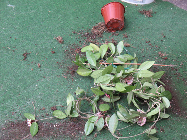 aber Frauchen macht angesichts der Pflanze ein Riesentheater… dabei stand sie doch auf der Terasse – ausgebürgert wie ich….