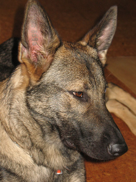 ist zur Zeit fast vollständig abgehaart – die Spitzmaus kommt doch immer wieder bei ihr durch. Doch dieser junge Hund ist viel vorsichtiger mit dem Kleinen als ihre Mutter….