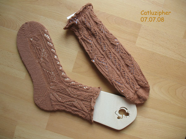 Aber eigentlich ging es ja um die Socken. Tolle Socken, sehr unterhaltsam beim Stricken und trotzdem eingängig. Da hat Claudia ein super Muster entworfen.