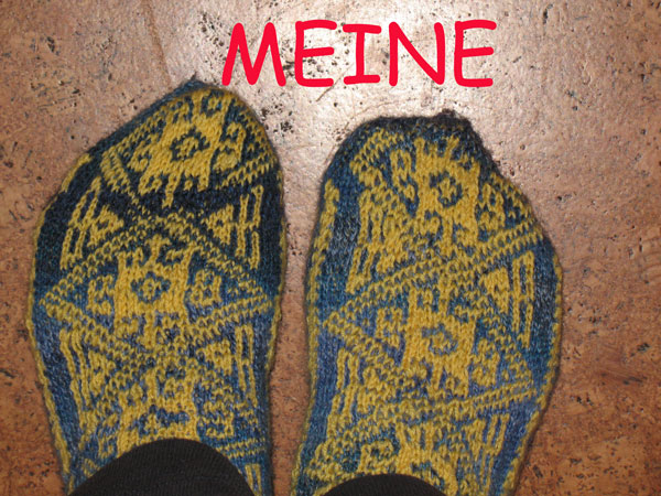 ja, nun gings fix mit dem zweiten Paar, da war ja schließlich der erste auch schon vorhanden. Leider war der erste Versuch der Adoptionssocken nicht von dem Erfolg gekrönt, den ich mir gedacht hatte. Ein Erfolg ist aber, dass ich nun auch ein Paar türkische Socken besitze